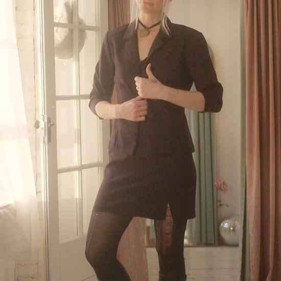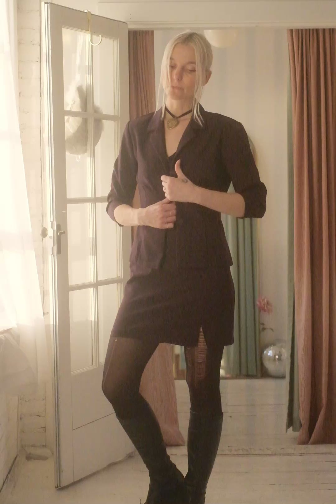 Sweet suit set in a deep dark purple, stretchy easy fabric, wear as separates or together - great condition.