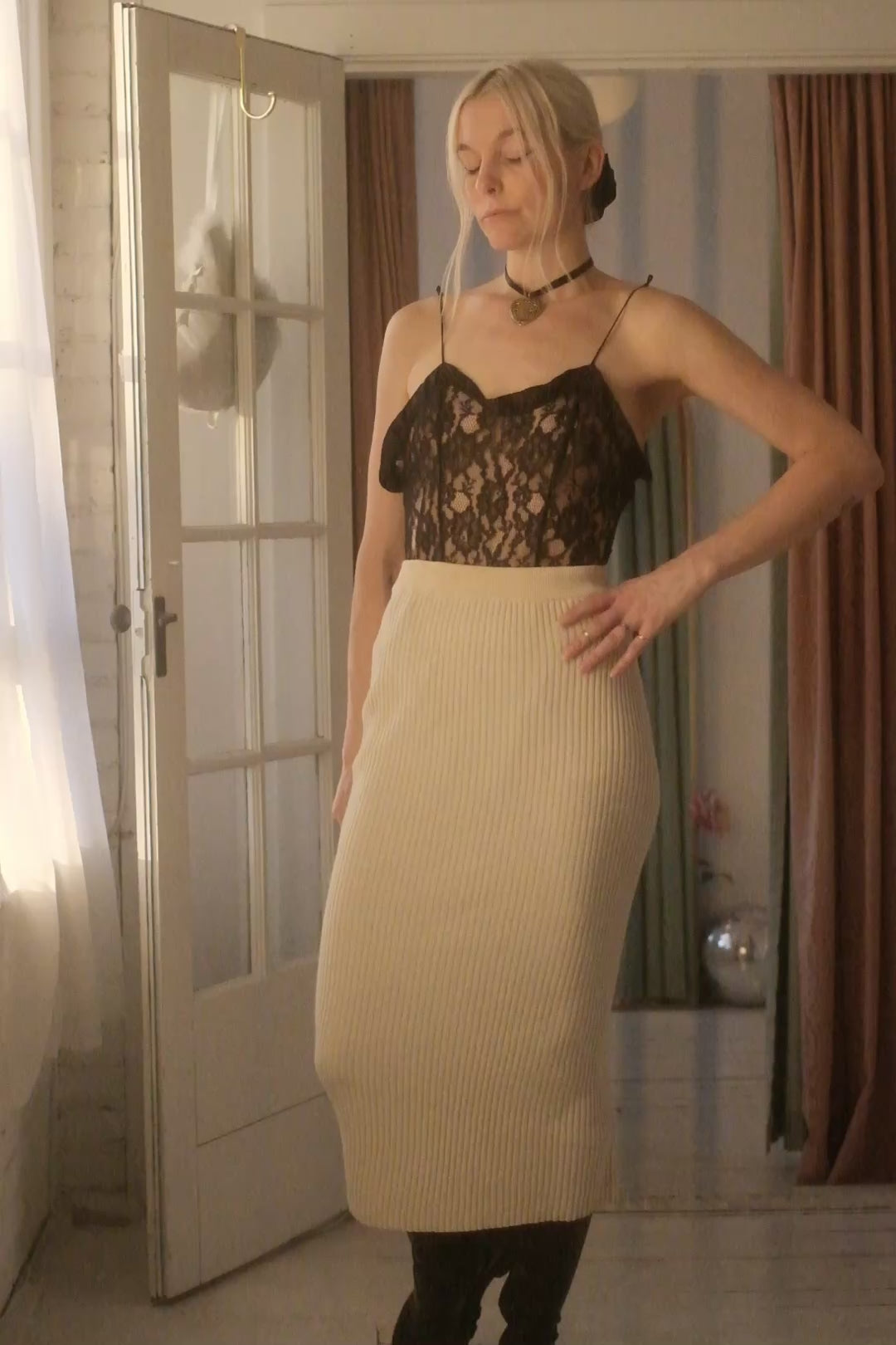 1980s Silk + Cashmere Knit Skirt